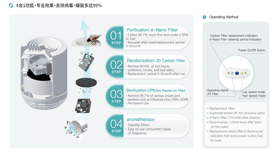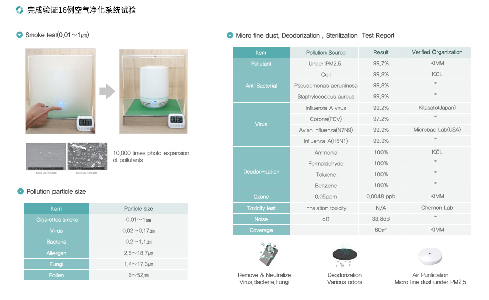 滅菌99%的病毒,各種細菌,腐敗的細菌除臭,並通過OH Radical強大的氧化力中和污染物
